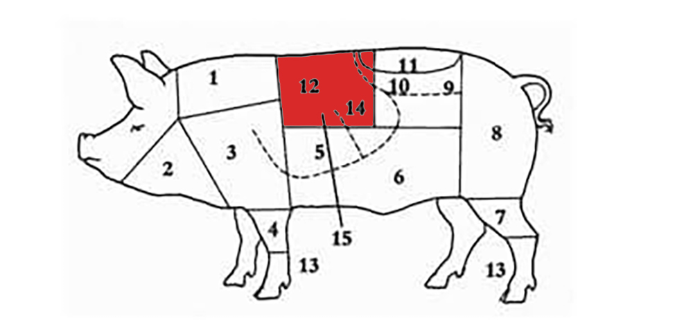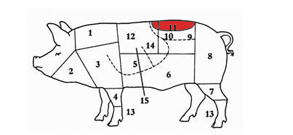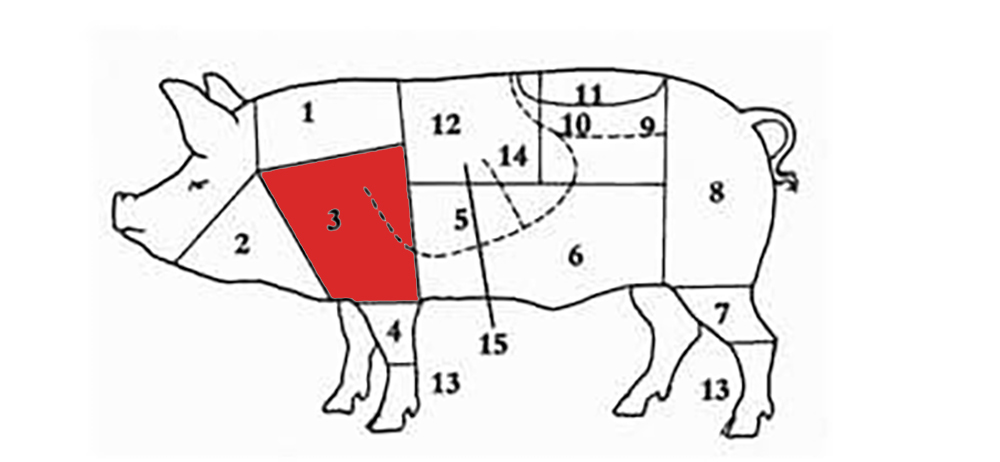 Partea grasă din zona gâtului, excelentă pentru jumări, tocană sau afumături.