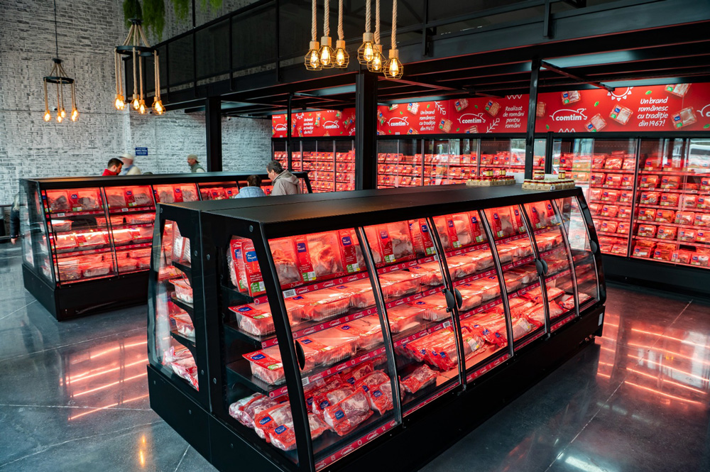 Oferim carne porționată industrial direct de la Comtim, ambalată gata pentru expunere